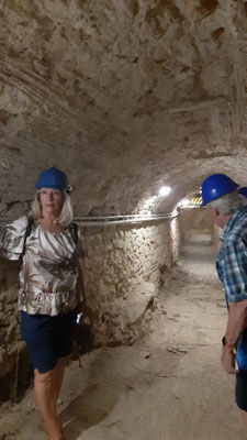 Wir begeben uns durch den Carrer d´Ullà zum Eingang des Mittelmeermuseums. Im Museum erwartet ums „La Cristina“. Sie ist unsere Führerin durch die „Mina de l´aigua“, der ins Mittelalter zurückgehenden unterirdischen Wasserversorgung Torroellas. Die Führung wird in den Touristenzeiten vom Museum immer wieder öffentlich angeboten. Da diese Angebote ausgelaufen waren, mussten wir sie extra buchen.